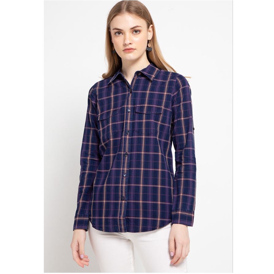 Jual MORPHIDAE - Milena Kemeja Wanita Motif Kotak Kotak Warna Heavy